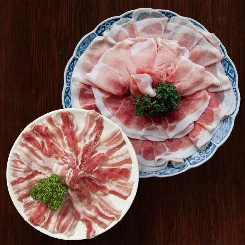 黒豚のうまみを存分に味わえる 人気No.1部位のバラ肉と、栄養価の高いウデ肉、脂肪分が少なくさっぱりとしたモモ肉をしゃぶしゃぶ用にスライスしてセット商品にしました。- バラエティーセット 彩 (いろどり) [ウデしゃぶ モモしゃぶ バラしゃぶ]800g